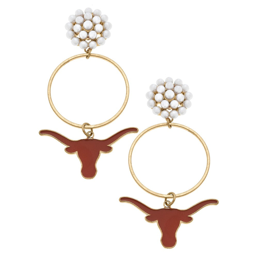 NCAA Officially Licensed Pearl Cluster Enamel Circular Drop Earring by Canvas Style