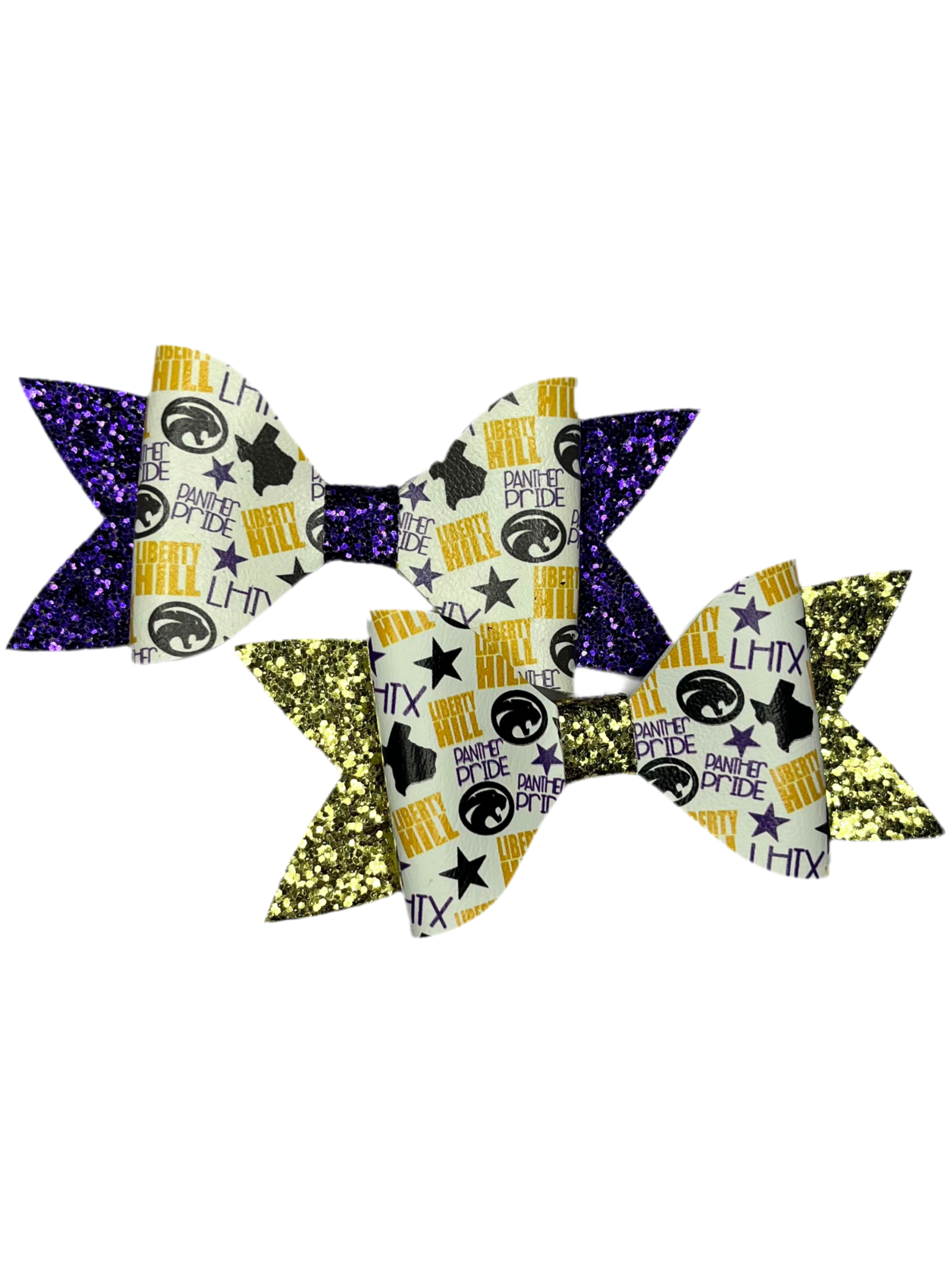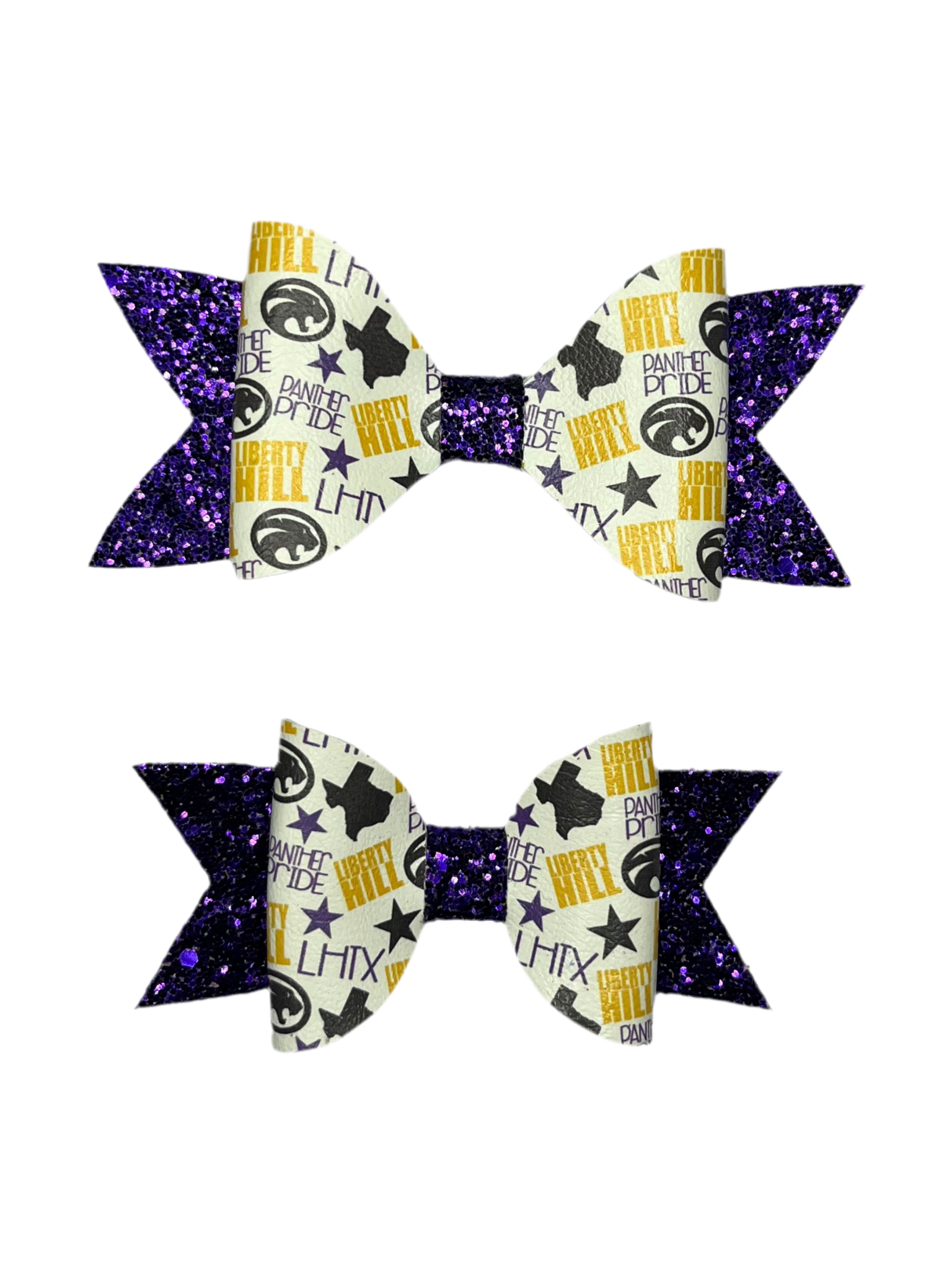 5" Panther LH Print over Purple Glitter with Metallic Purple Bow with alligator clip