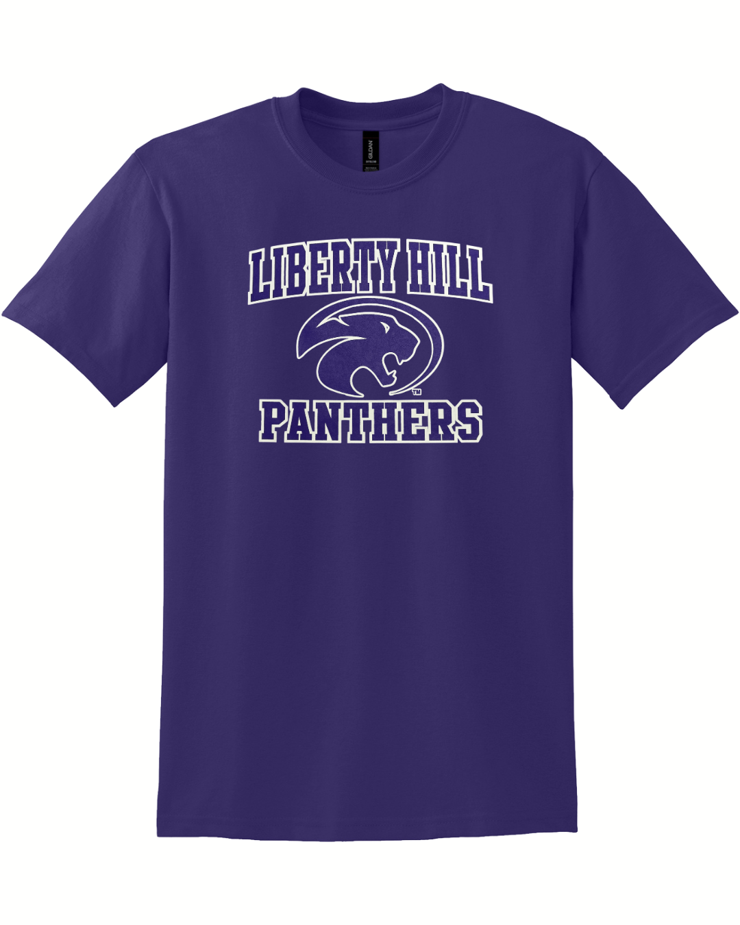 Youth purple t-shirt with white Liberty Hill Panthers.
